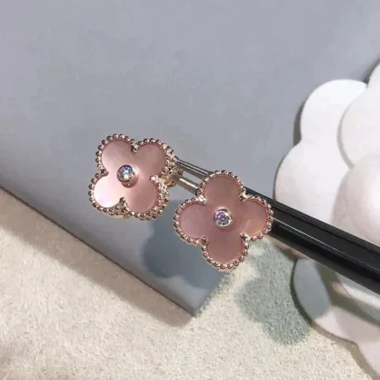 [Eternal Jewelry]CLOVER MEDIUM 1 MOTIFS PINK MOP DIAMOND EARRINGS