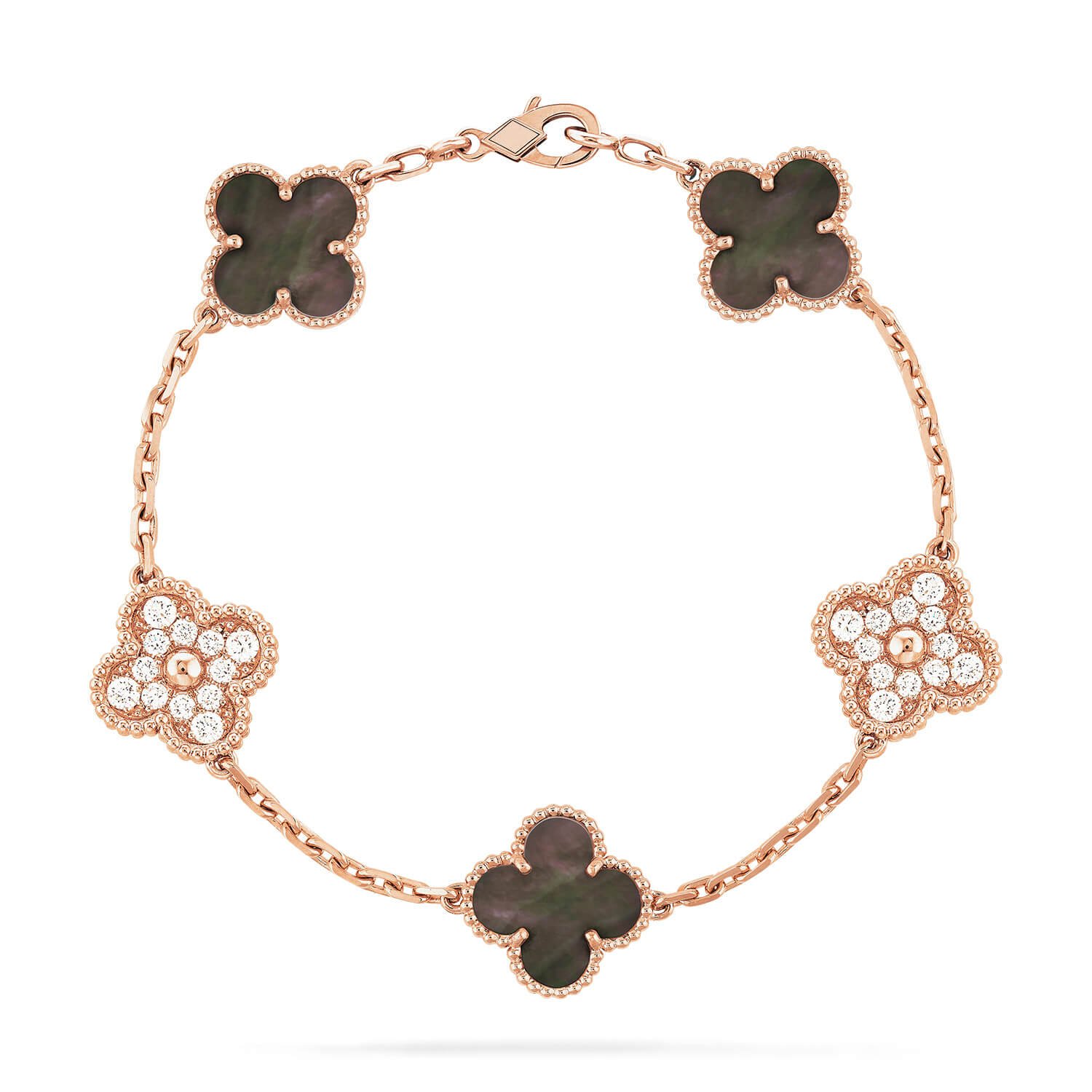 [Eternal Jewelry]CLOVER 5 MOTIFS DARK MOP AND DIAMONDS PINK GOLD BRACELET